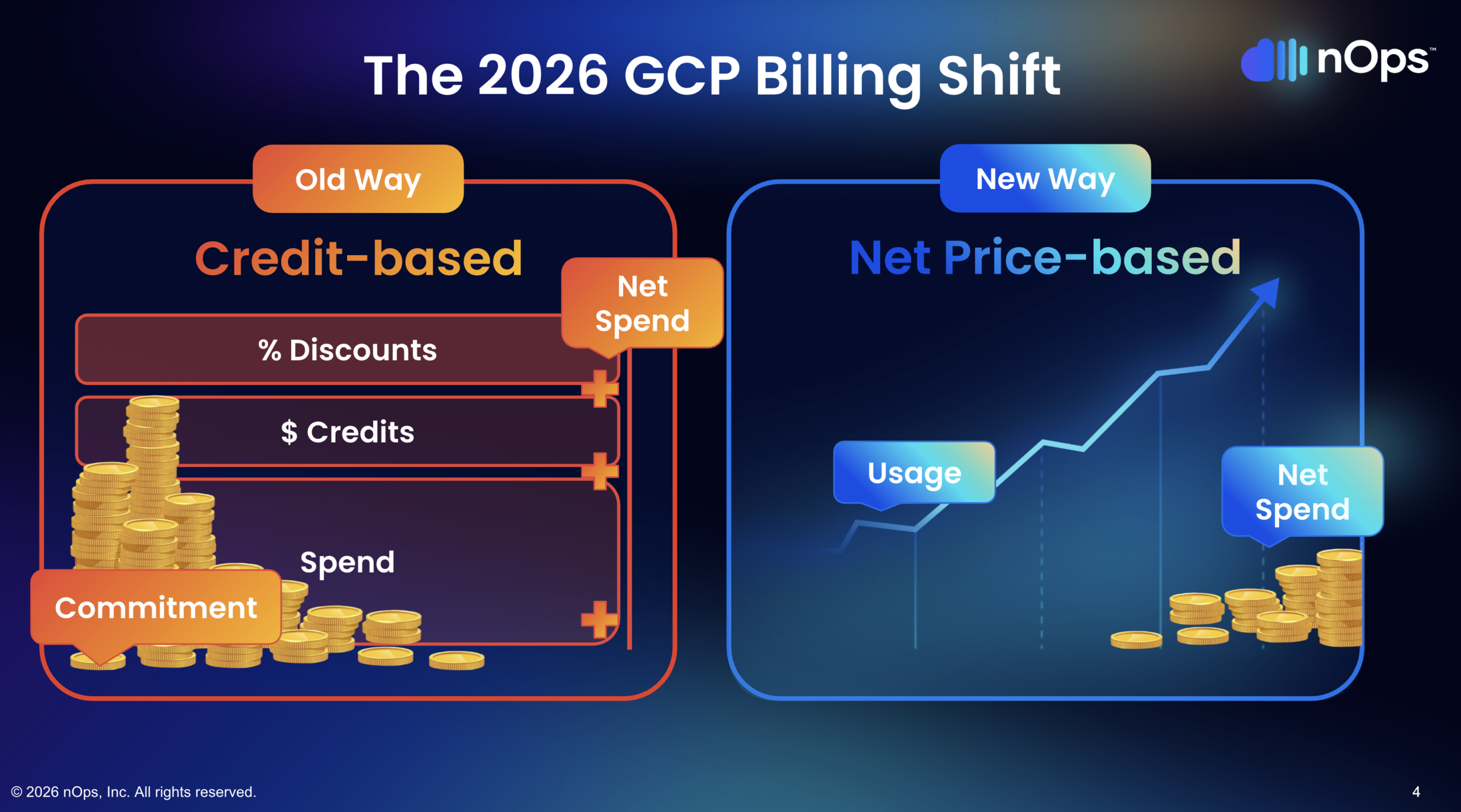 For FinOps teams, the practical impact goes beyond individual purchases. If you built reports, dashboards, COGS allocation, or savings tracking on the old billing model, those all need to be normalized. Legacy billing data doesn’t retroactively update to the new format. Any team that flipped to net price billing without refactoring their analytics is now making decisions based on inconsistent data.