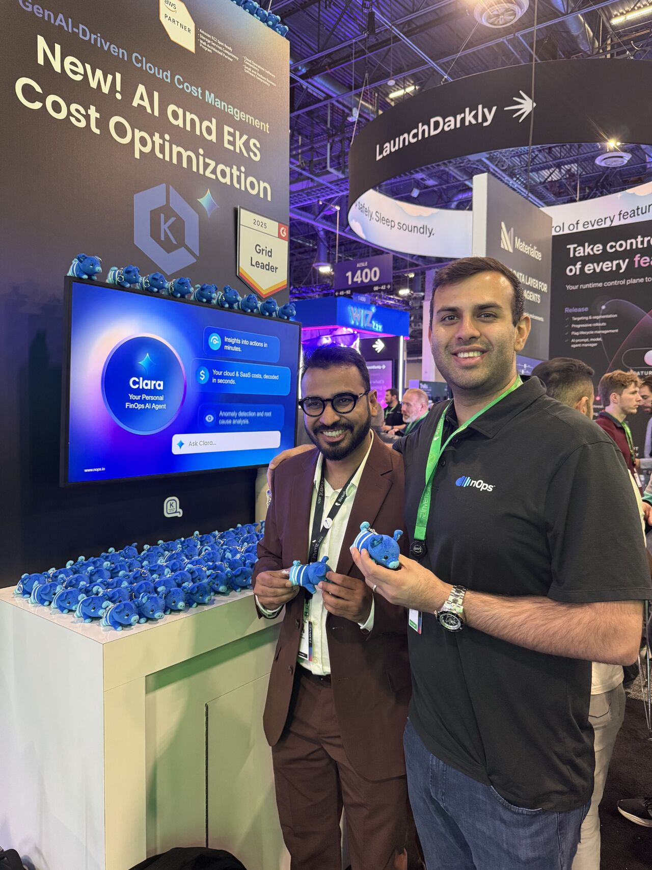 nOps was on the floor at Booth #1234! We handed out swag themed on the nOps Penny mascot, G2 stopped by to hand us a fresh Grid Leader badge, and we ran a light-touch Sphere ticket raffle to keep things fun. Most of the conversations at the booth, though, were about real cost challenges—untangling commitments, bringing EKS costs under control, and understanding how new AI workloads were starting to reshape AWS bills.