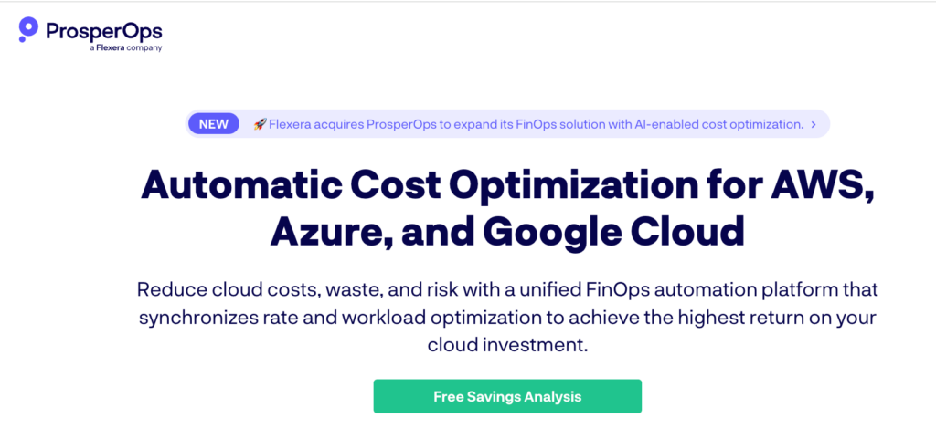 Flexera is an enterprise FinOps and technology spend management suite that provides multi-cloud cost visibility, allocation/governance, and optimization workflows, and it also owns key “active optimization” products on this list—Spot (acquired from NetApp) and ProsperOps (acquired January 6, 2026).