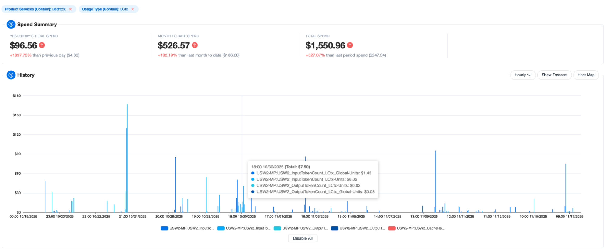 Long Context (LCtx) usage in Amazon Bedrock Claude models can silently inflate cost when sessions grow too large, or when applications unintentionally keep sessions open longer than necessary (200k + tokens). Many teams lack visibility into when LCtx is activated, how much it costs, and—most importantly—how to prevent unnecessary spend.