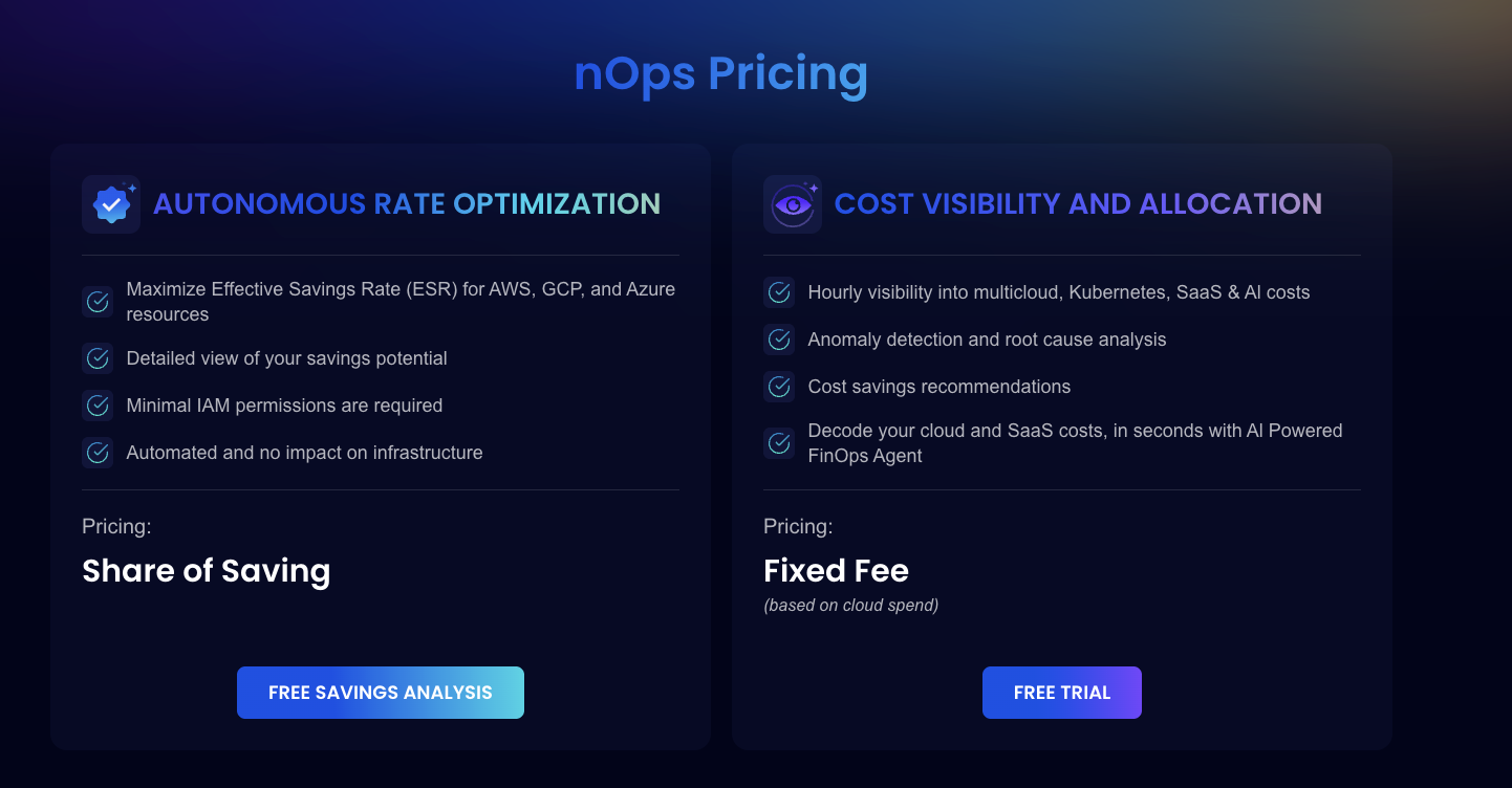 For cost allocation, nOps uses a predictable fixed fee model.