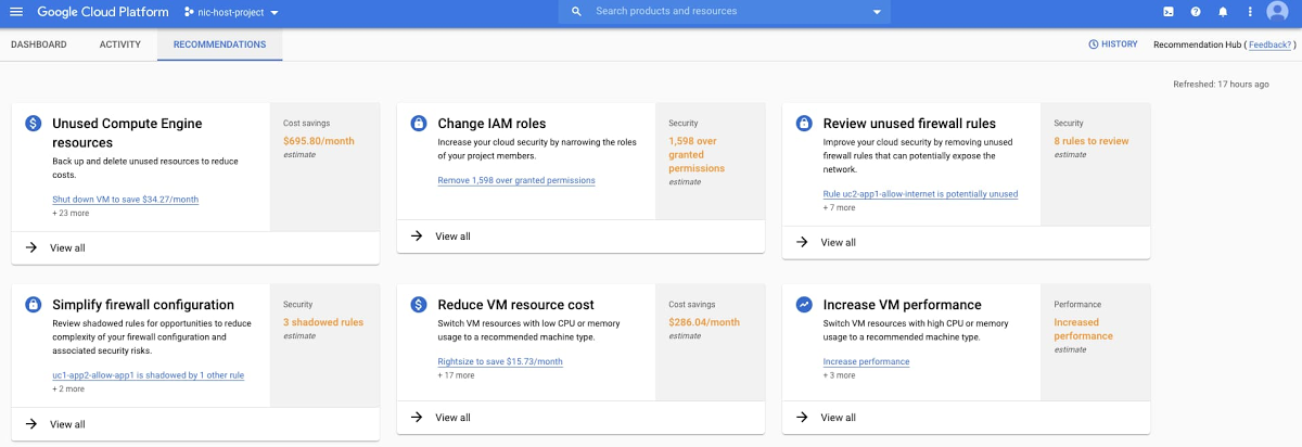 | Recommender / Active Assist | AI-driven recommendations for right-sizing, CUD purchases & other cost efficiency measures | Surfacing low-hanging optimization opportunities |