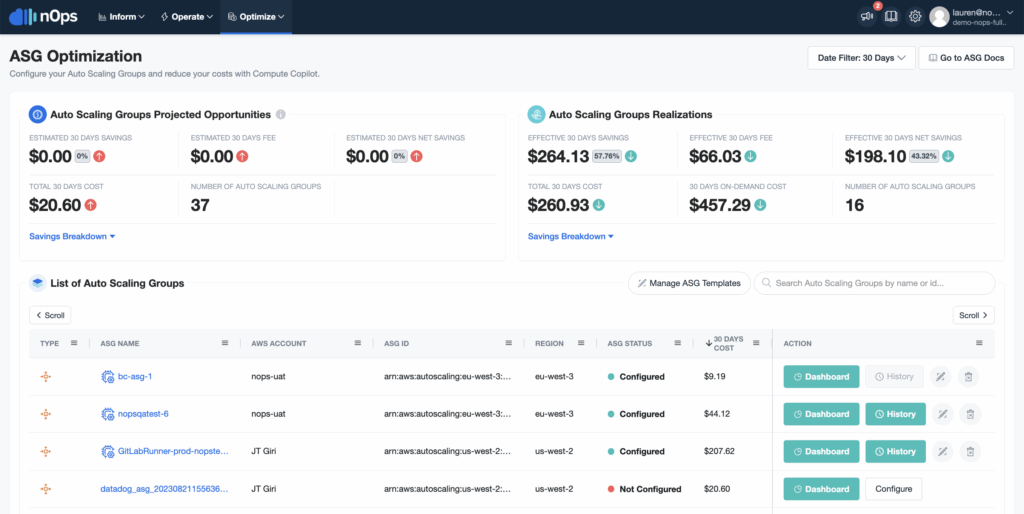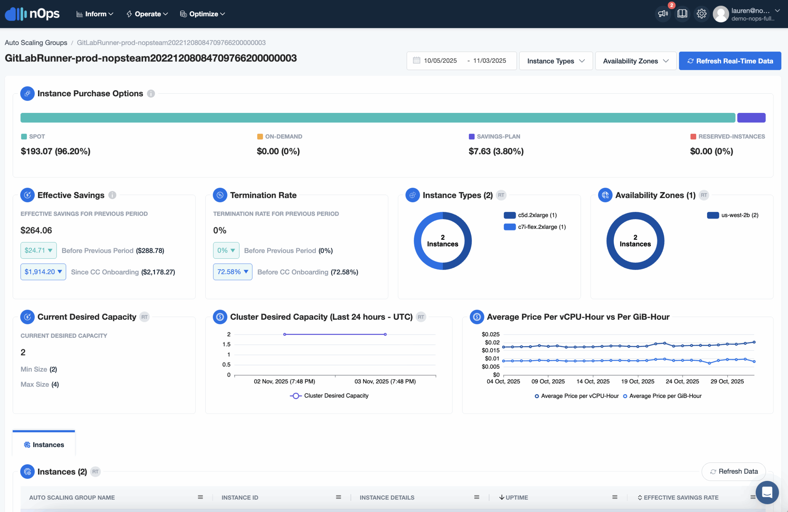 At nOps, we manage $2 billion in AWS spend and have a deep understanding of how to reliably run Spot at scale. That’s why we built Compute Copilot for ASG, an intelligent workload provisioner that automatically provisions and manages instances. Copilot ensures that your ASGs are continually optimized, harnessing the ideal blend of RI, SP and Spot to deliver optimal cost and performance.