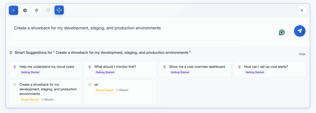 Setting up cost allocation and showbacks has traditionally been a time-consuming, multi-step process. Creating showbacks, defining allocation rules, managing tags, and distributing unallocated costs across departments requires navigating through multiple screens, understanding complex configurations, and ensuring accuracy at every step.