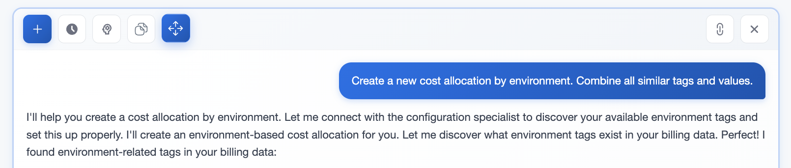 - Generates ongoing insights — turning any cost allocation query into shareable reports that update automatically