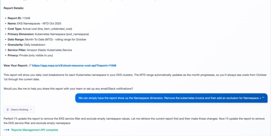 Reports in Clara extends FinOps Agent Mode, adding persistent, shareable reports to the same automated workflows you already use for anomaly detection, waste discovery, and trend analysis.
