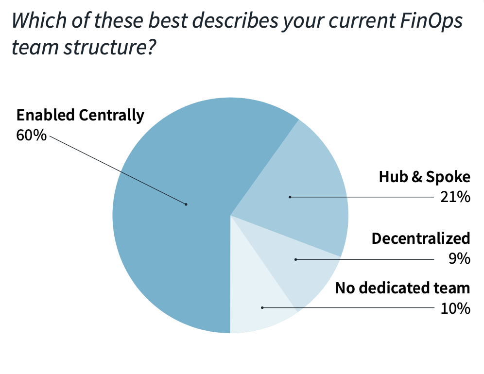 The most common structure is centralized enablement (60%), followed by a hub-and-spoke model (21%).